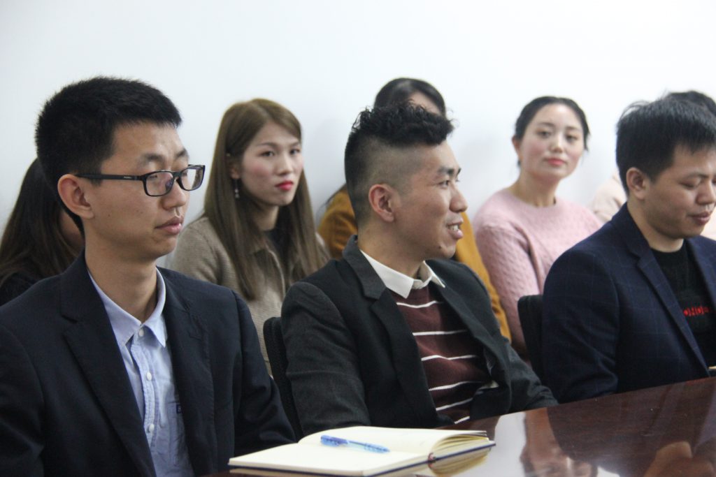 公司全體員工在會(huì)議上認(rèn)真傾聽(tīng)領(lǐng)導(dǎo)和其他同事發(fā)言